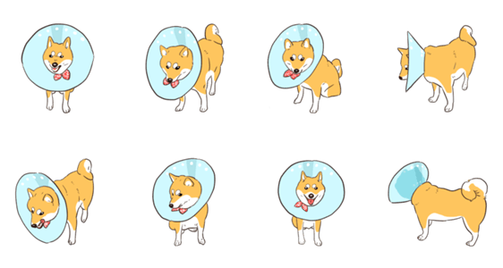 愛犬きなこの可愛らしいスタンプです。エリザベスカラーを付けると、どうしても固まってしまいます。