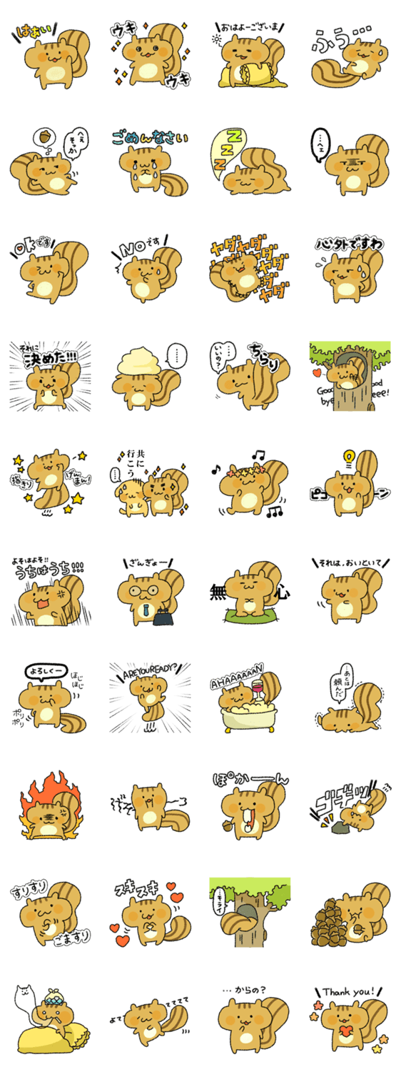 お茶目で自由気ままなシマリス、「りすちゃん」のスタンプです。自分に正直に生きてます。たまに媚びます。友情出演、気の毒犬の「いぬくん」。