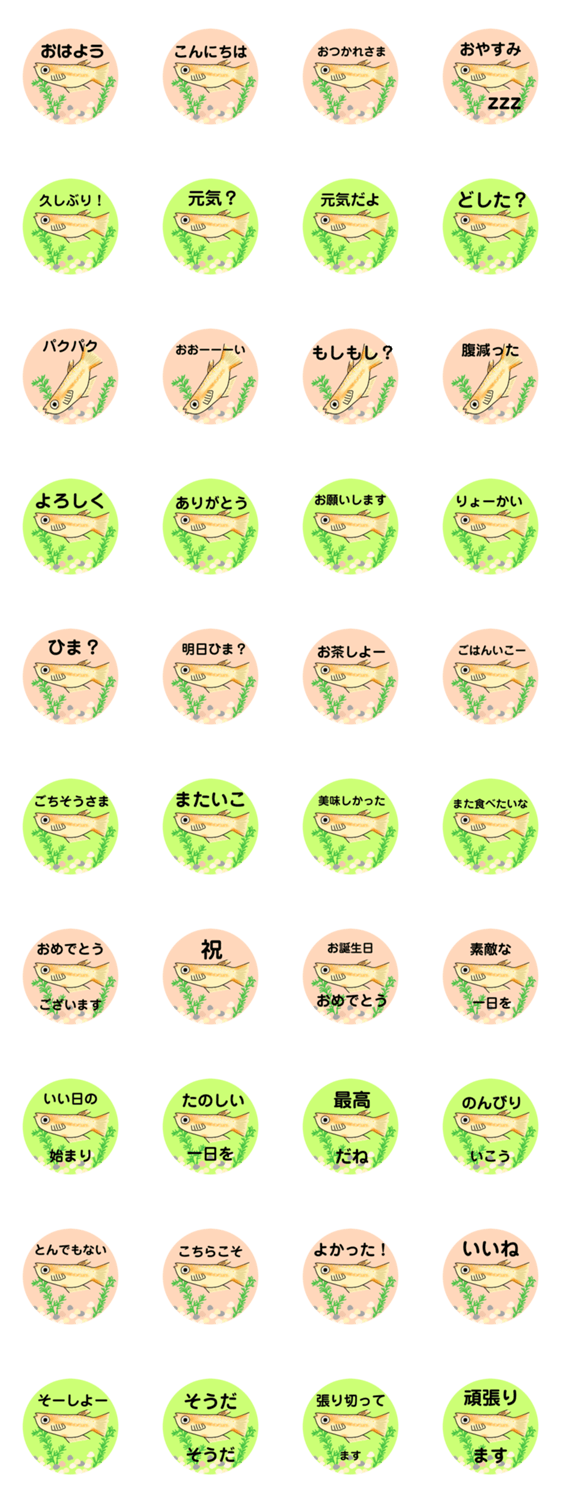 | スタンプ説明 | 使いやすい! ほんわかパステルなキラキラメダカくん |