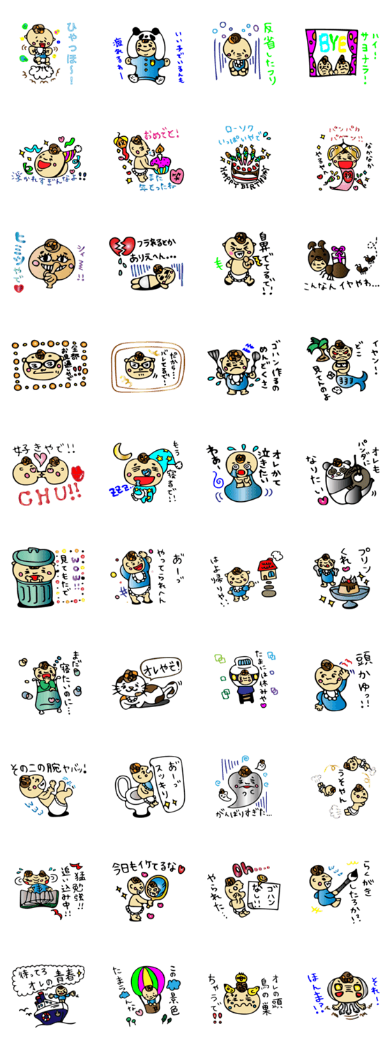 元気な赤ちゃんの男の子babyちんたんスタンプ,待望の第2弾!今回は少しお口が悪い?でも憎めない可愛らしさが!