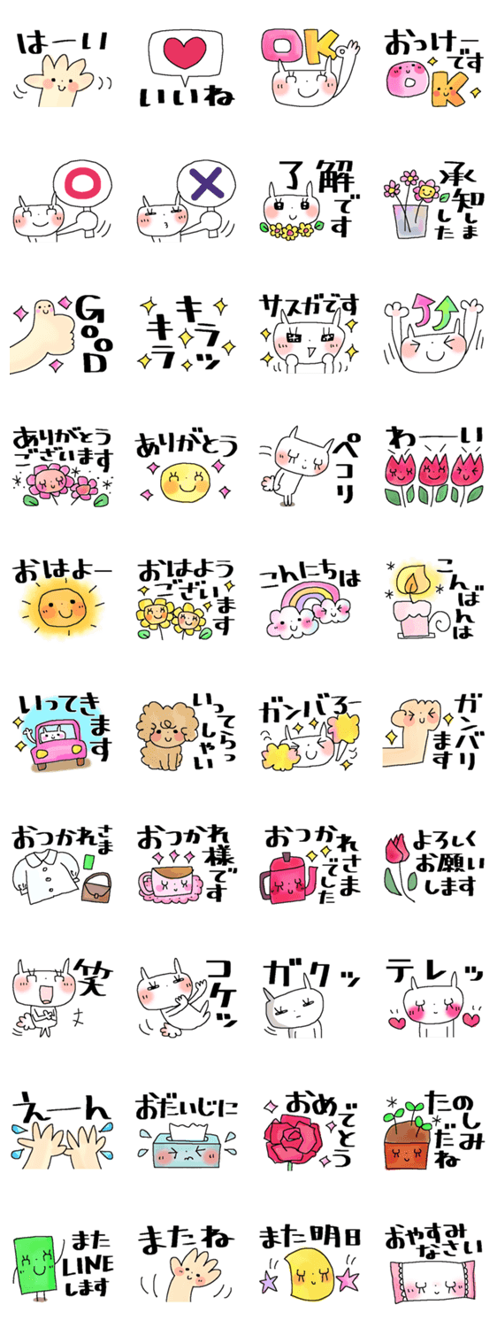 すごく見やすい大きな文字、サクっと送れるシンプルで便利な40個。感謝と挨拶、やさしい気持ちが伝わる、うさきゅんのほっこり*贈るスタンプです。