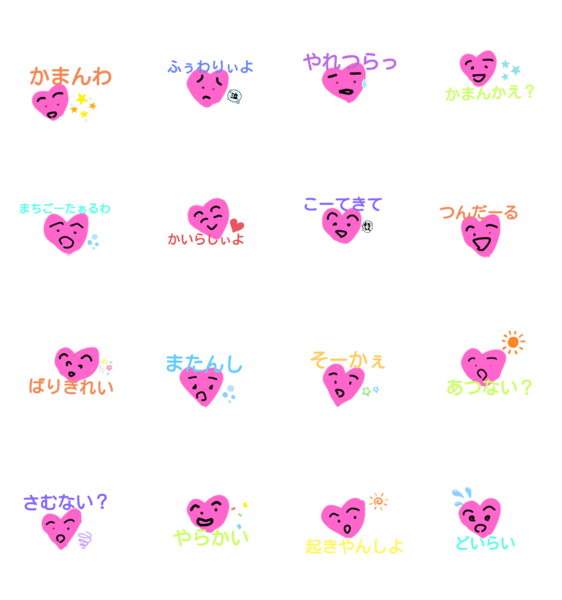 | スタンプ説明 | ハートのイラストを書いて、テキストとスタンプで方言つけました。 |