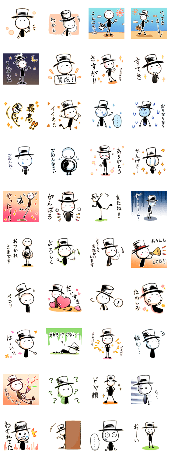 おしゃれ棒人間のスタンプその2。 より表情豊かに、日常で優しい気持ちで送りあえるスタンプです!