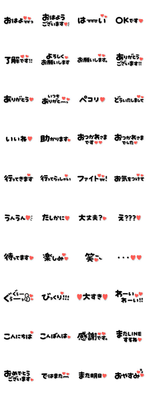 シンプルな文字にハートを添えて♡大人可愛く毎日の会話で使いやすいシンプルなスタンプです。
