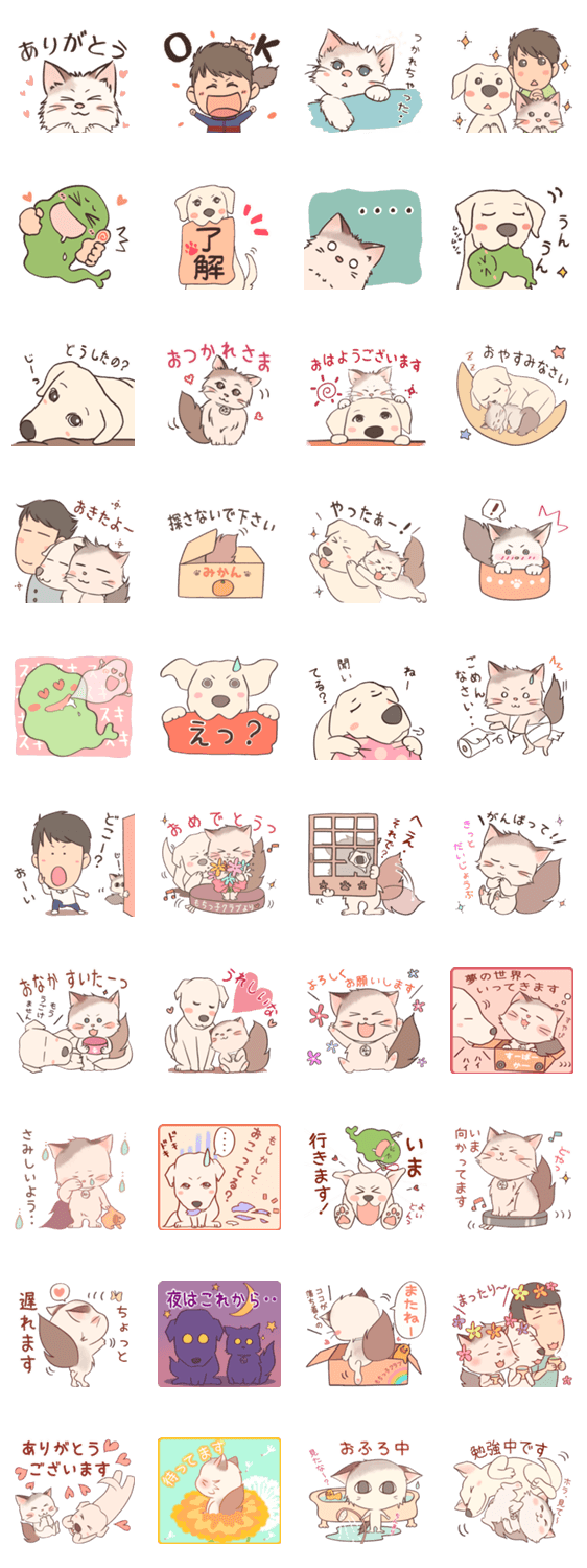 | スタンプ説明 | YouTube「ベルとスノーとK2です」のイラストスタンプNo. 2。らほさんのご好意にて完成しました! |