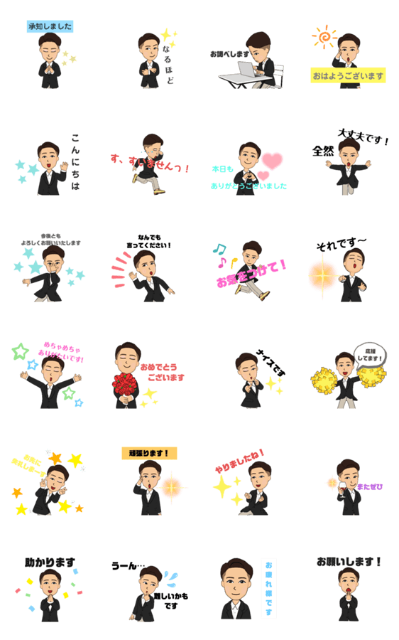 スタンプ説明 爽やかサラリーマンのビジネス会話
