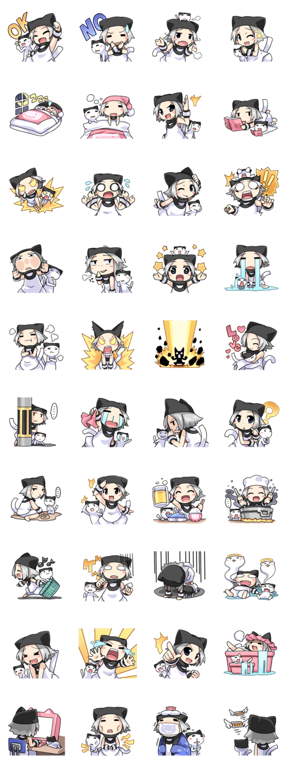 猫娘と白猫のスタンプです。基本的なスタンプを作成いたしましたので比較的使いやすいと思われます。是非是非お使いください(=人=)