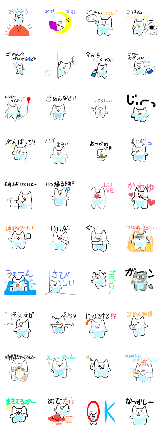 白ネコのあいうえお・・・ってるスタンプ