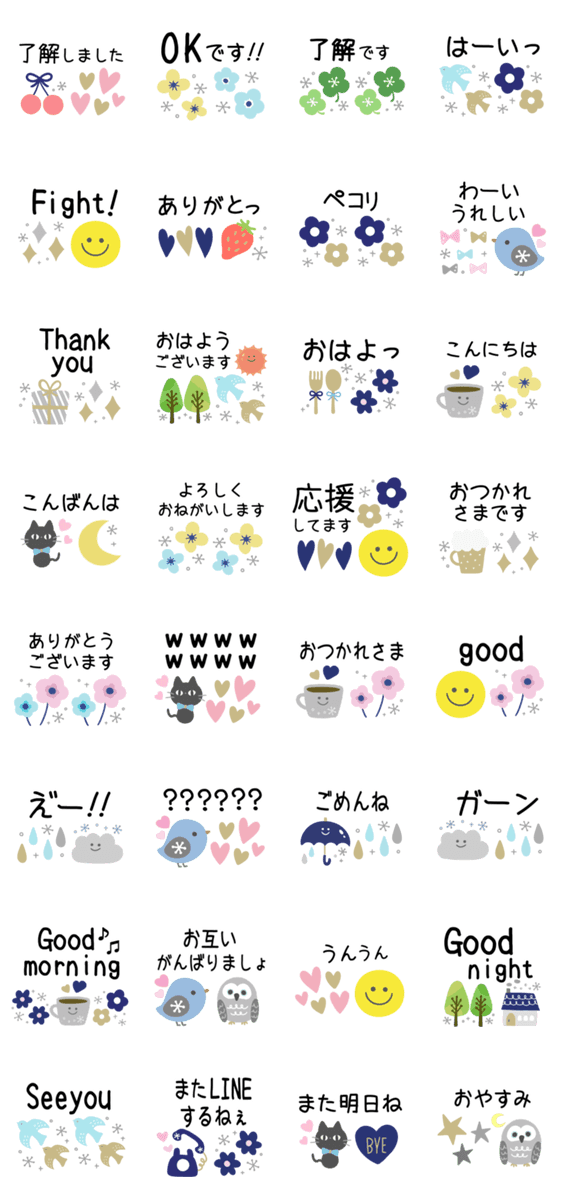 日常で毎日使える敬語を集めた落ち着いた色合いの北欧風スタンプです。一つあると便利な毎日使える日常言葉を集めました。 あいさつ/丁寧/カラフル/お洒落/家族/カップル