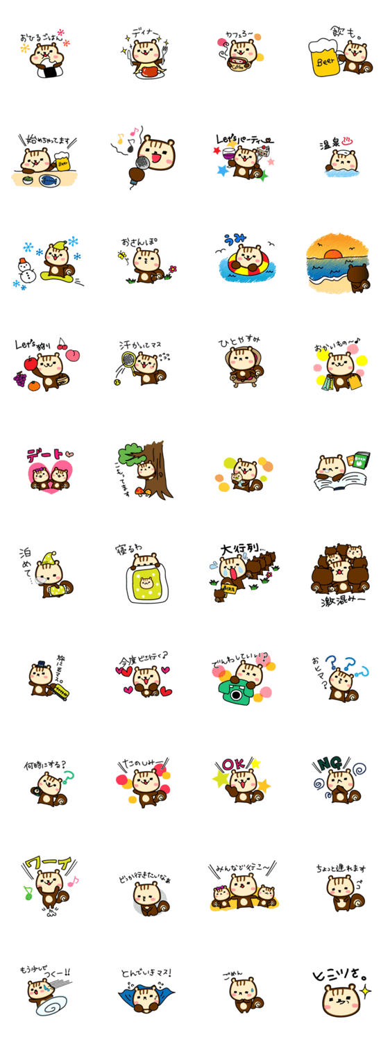 休日やおでかけに便利なゆるいりすのスタンプです。