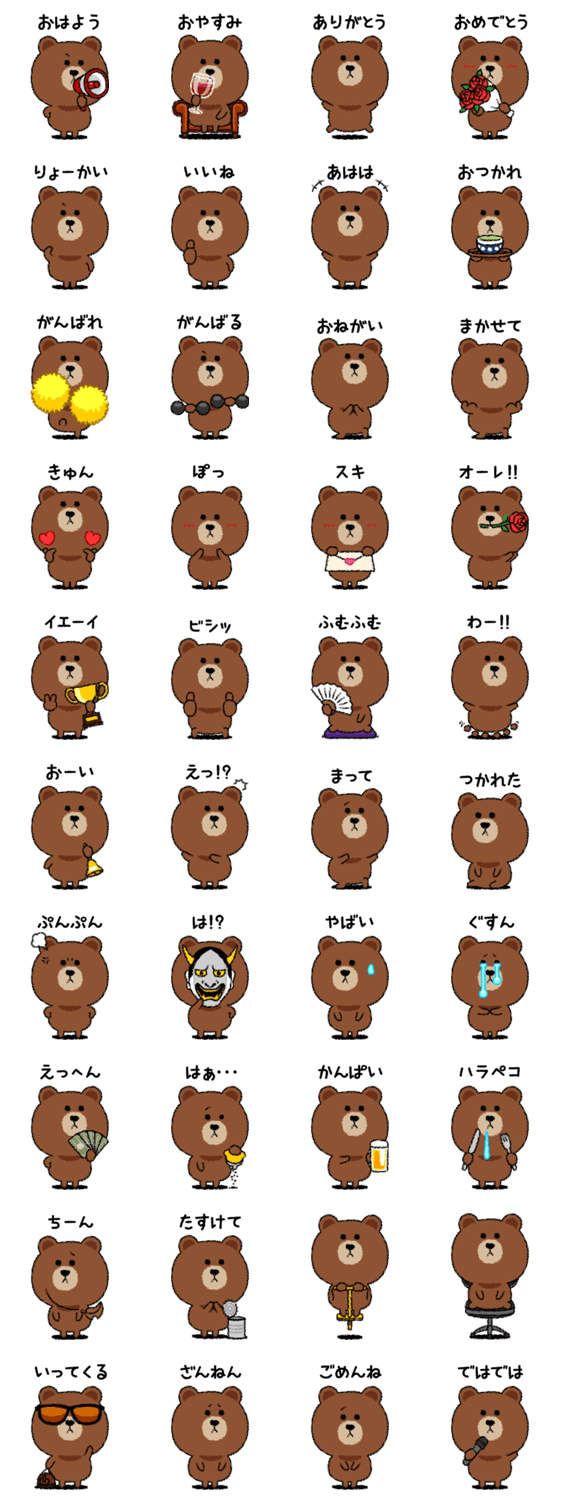 クレヨンで描いたブラウンが絵本の中から出てきたようなスタンプです。デカ文字なので老眼でも安心♪芋ジャージの名前スタンプの『くーが』作。 ※BROWN & FRIENDS をみんなでつくろう!キャンペーン参加スタンプです