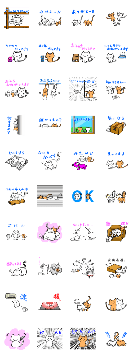 | スタンプ説明 | ねこのお母さん、お父さん御用達の可愛い 『ゆるねこ』スタンプが登場!日常スタンプはもちろん、「猫のご飯買って来て!」なんて便利なスタンプも! |