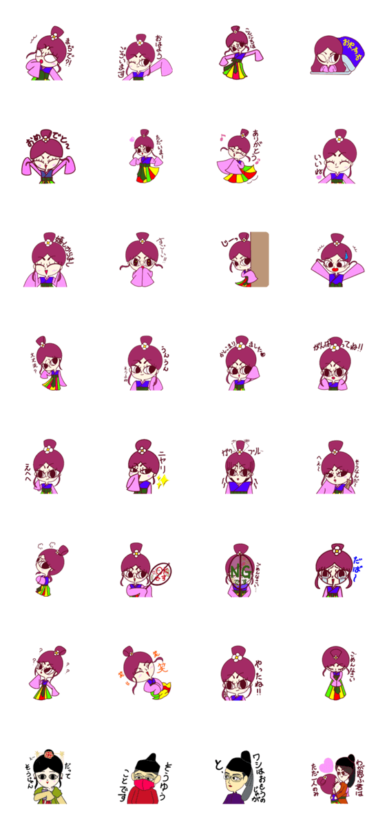 | スタンプ説明 | 美桜ちゃん万葉集LINEスタンプ第1弾。万葉集大好き美桜ちゃんが万葉衣装を着て気持ちを伝えるよ。【作:大和美桜】 |