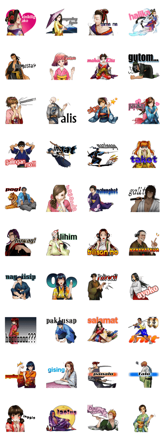 | スタンプ説明 | 日本文化の浮世絵で、よく使う日常会話を現代風にアレンジ。フィリピン×日本の架け橋スタンプ |