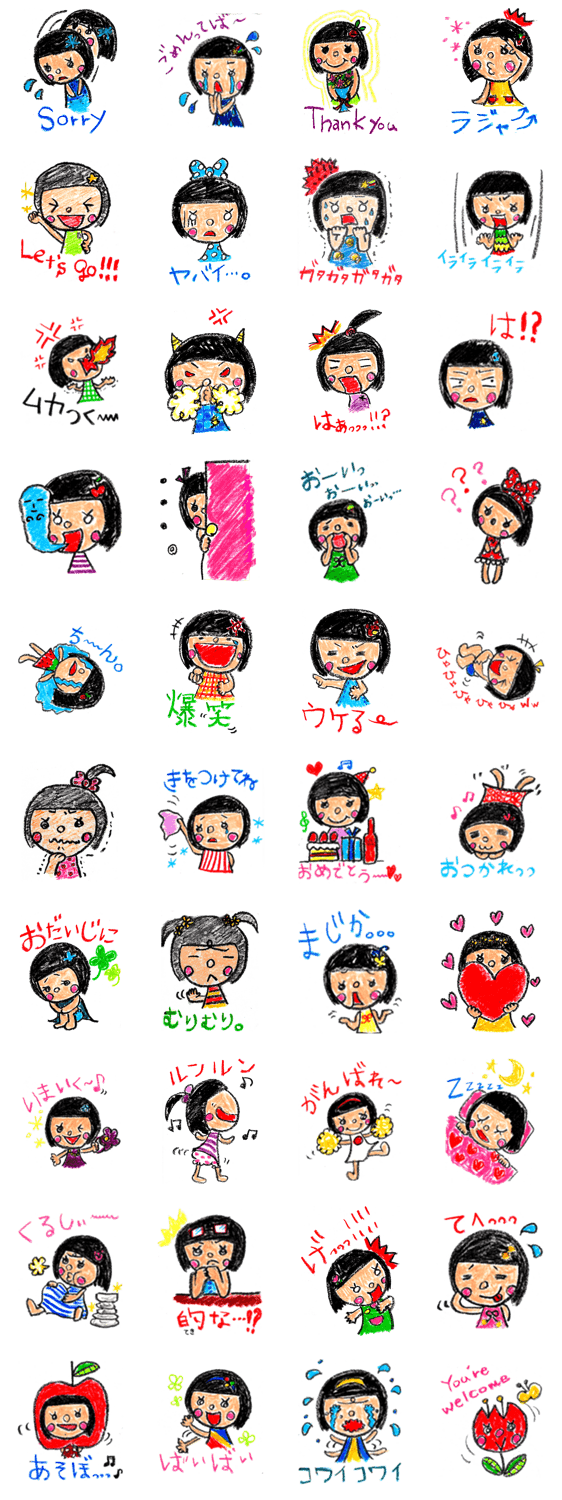 オシャレでおちゃめで愛らしい女の子のゆるカワスタンプです