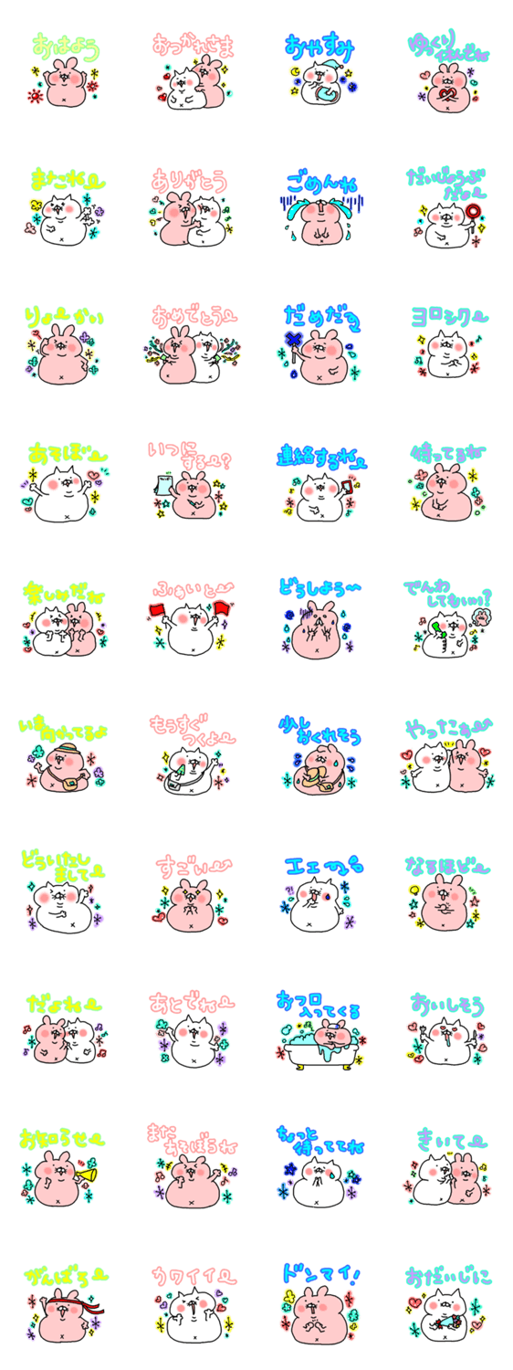 ちょっと太めのモチッとしたウサギとムチッとしたネコ。仲良しな2匹のとっても可愛くて使えるスタンプを作りました。ネコの方が少し太め。