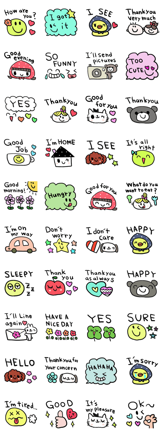 シンプルな日常会話スタンプです。英語スタンプ