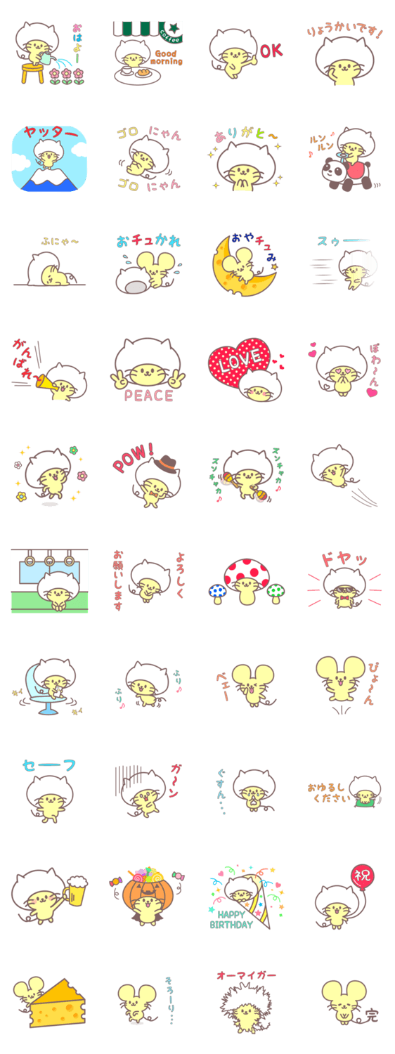 まぁるく大きな頭がきのこみたいで可愛い、ネコをかぶったねずみさん。おしゃれが大好きで、ちょっとお茶目な性格。猫をかぶるといつもより優しくなれるとか...?