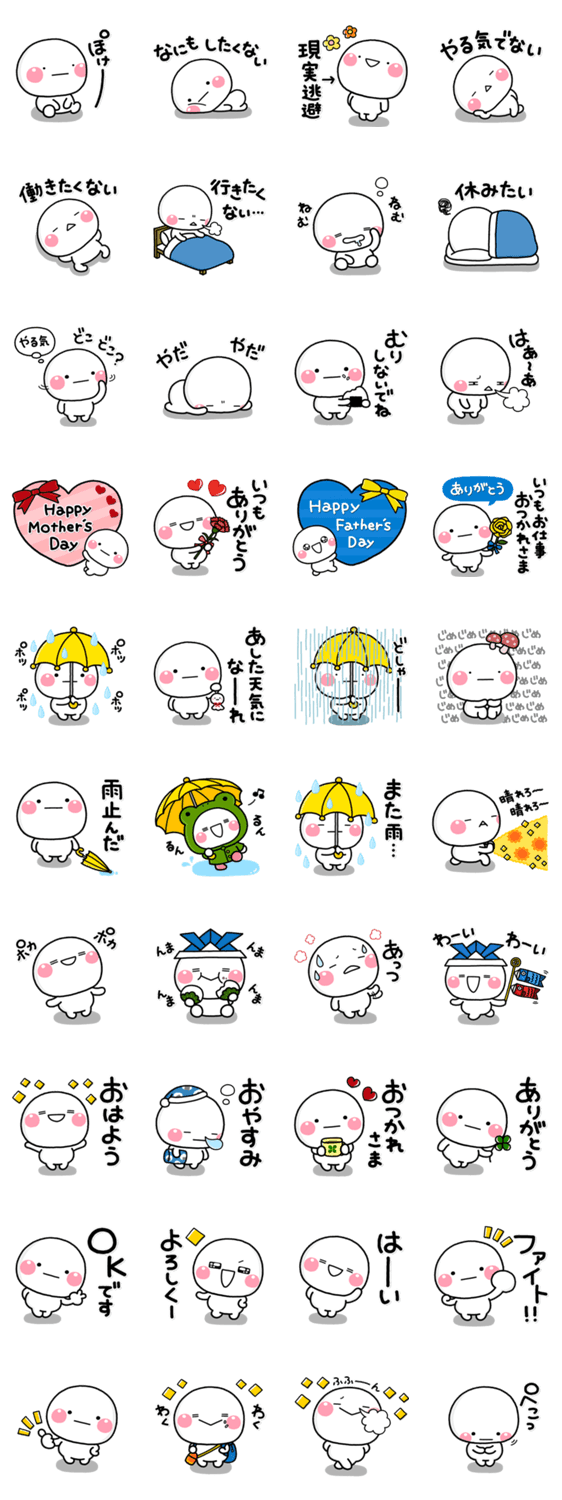 3連休から大型連休後に使えるしろまるのスタンプです。特に5月6日以降に使える内容を揃えました。【作:いしいともこ】