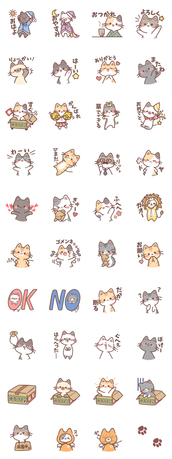 毎日使えるゆるっと可愛い猫たちのスタンプです!