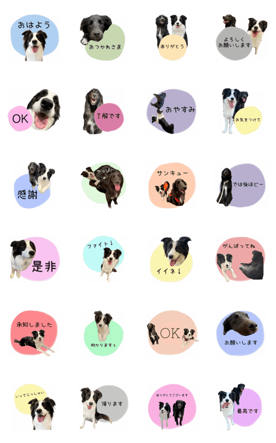 | スタンプ説明 | 白黒ガールズ★ジェッティ(ゴールデンレトリバー×シェルティ)★ヘイリー(ボーダーコリー)★Instagram: jetty_hailey |