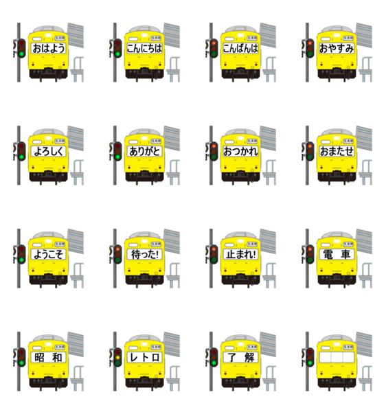 動く鉄道のスタンプです。信号やプラットホームにあわせて列車が停車します。