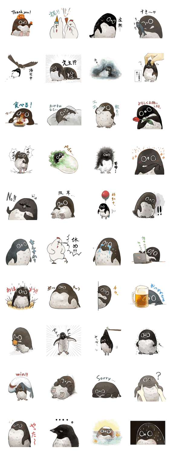 アデリーペンギンのスタンプ。もちもちで可愛い生き物でも、時々虚無になる。そんな日もある。