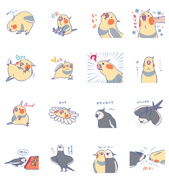 オカメインコにいくらとつみれの使いやすいスタンプです!