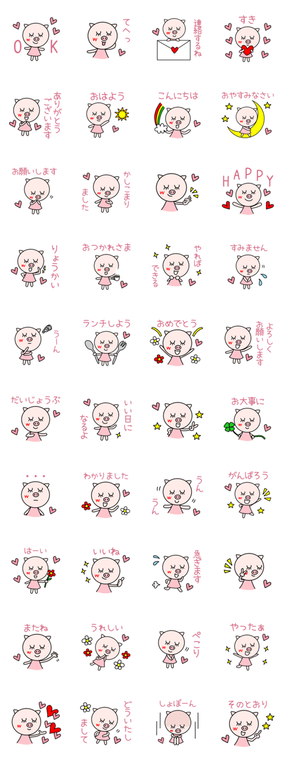 かわいいぶたちゃんの、毎日使えるスタンプです。