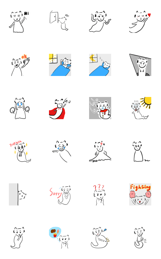 白ネコのあいうえお・・・ってるスタンプ