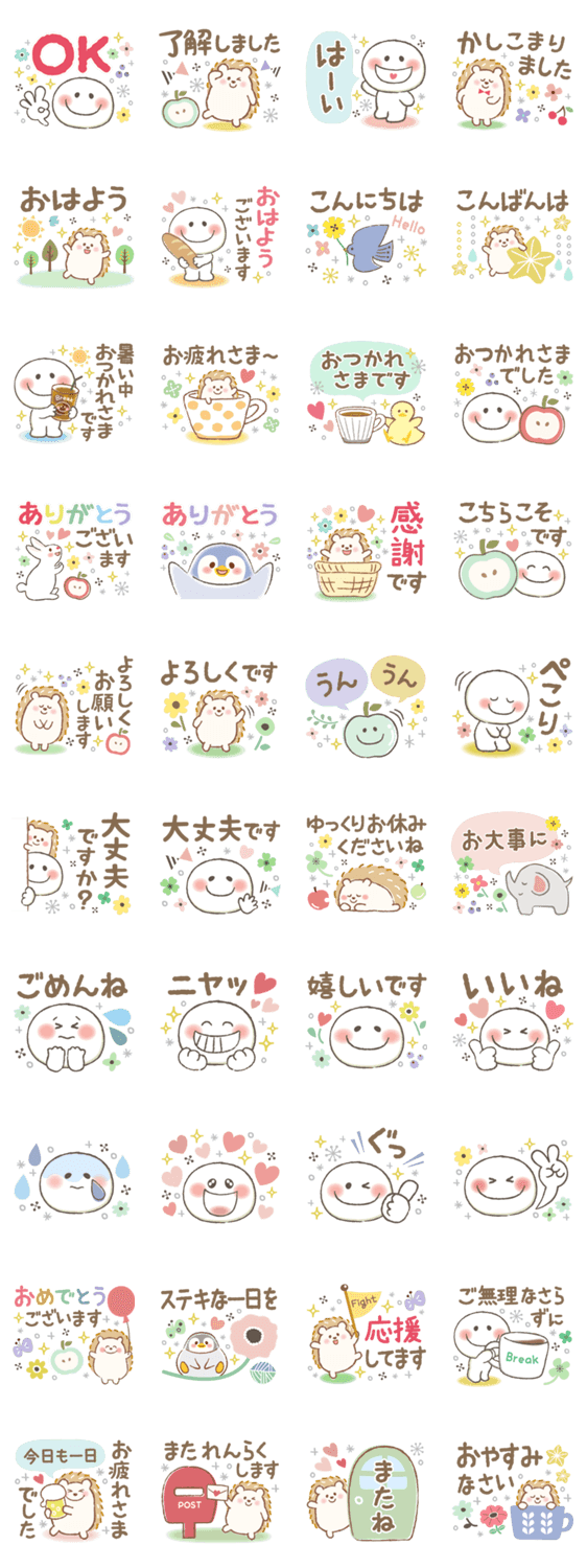 ふんわりかわいいアニマル達が気づかう優しい北欧風なスタンプ♡日常敬語がたくさん!目上の方にも是非どうぞ。