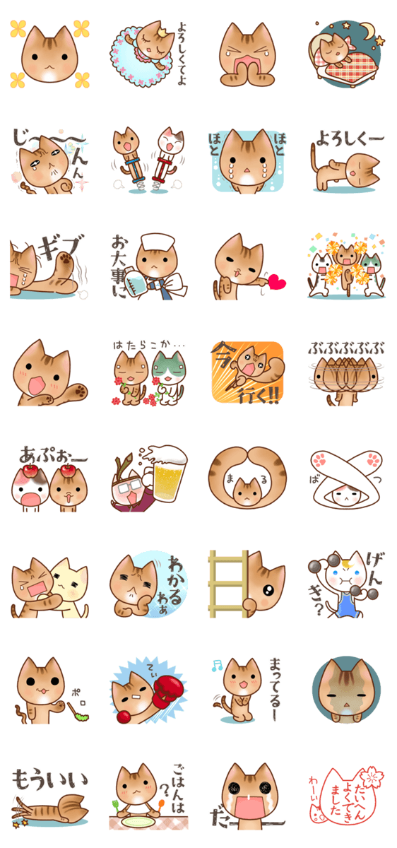 キジトラ猫の「ゆず」とおともだちと先生のスタンプ第2弾。