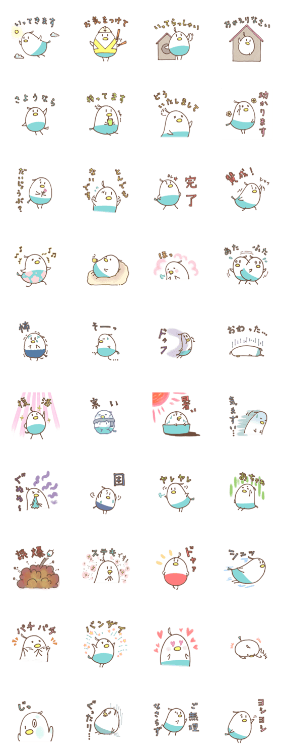 体がはんぶん青色の鳥のスタンプです。模様じゃなくてパンツかもしれません。 あなたの生活にはんぶん幸せを運んでくれるかも・・・!?
