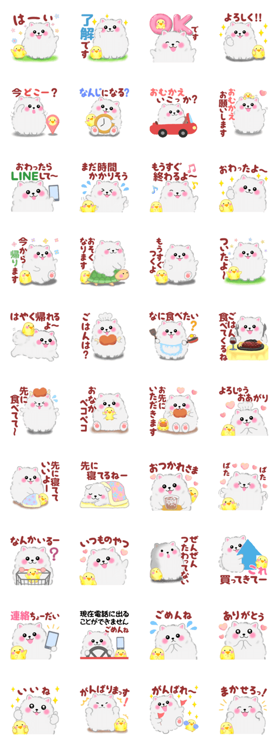 ポメラニアン「ぽちゃん」の家族の連絡用スタンプです。 家族、友達、カップルとの日常会話や挨拶・連絡用にお使いください。