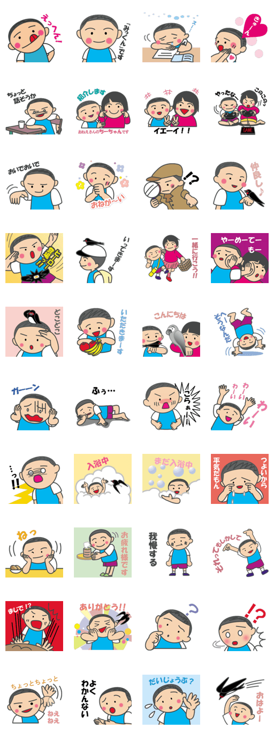 ぼうず頭の「みっくん」が活躍するスタンプです。