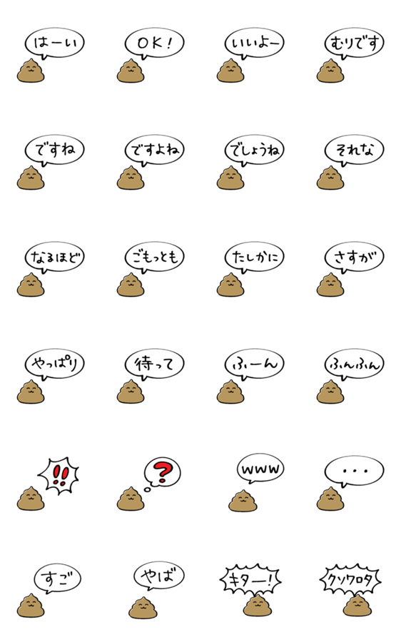 かわいいうんちがムニムニ動く♪とりあえず返事したい時に便利なスタンプ。 ふきだし/吹き出し/簡潔/返信/相槌/一言/うんこ/面白い/ネタ