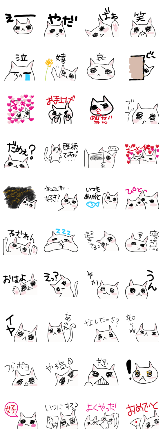 ゆるねこ(白色)の日常的に使えるスタンプです。
