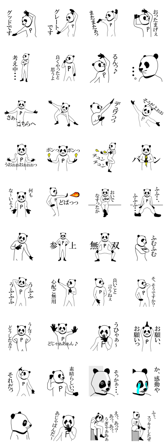 | スタンプ説明 | 相手に響くかな、響かないかな。ぱんだマンのスタンプです。 |