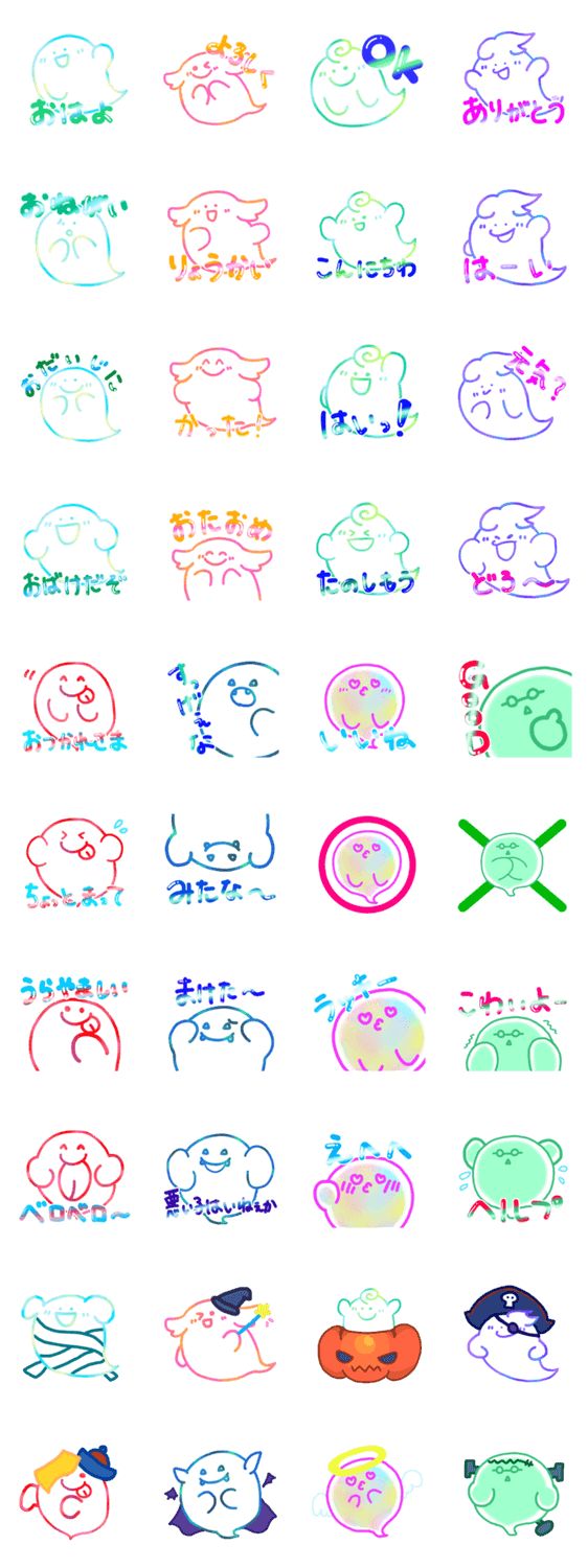 おばけたちの日常的に使えるスタンプです。