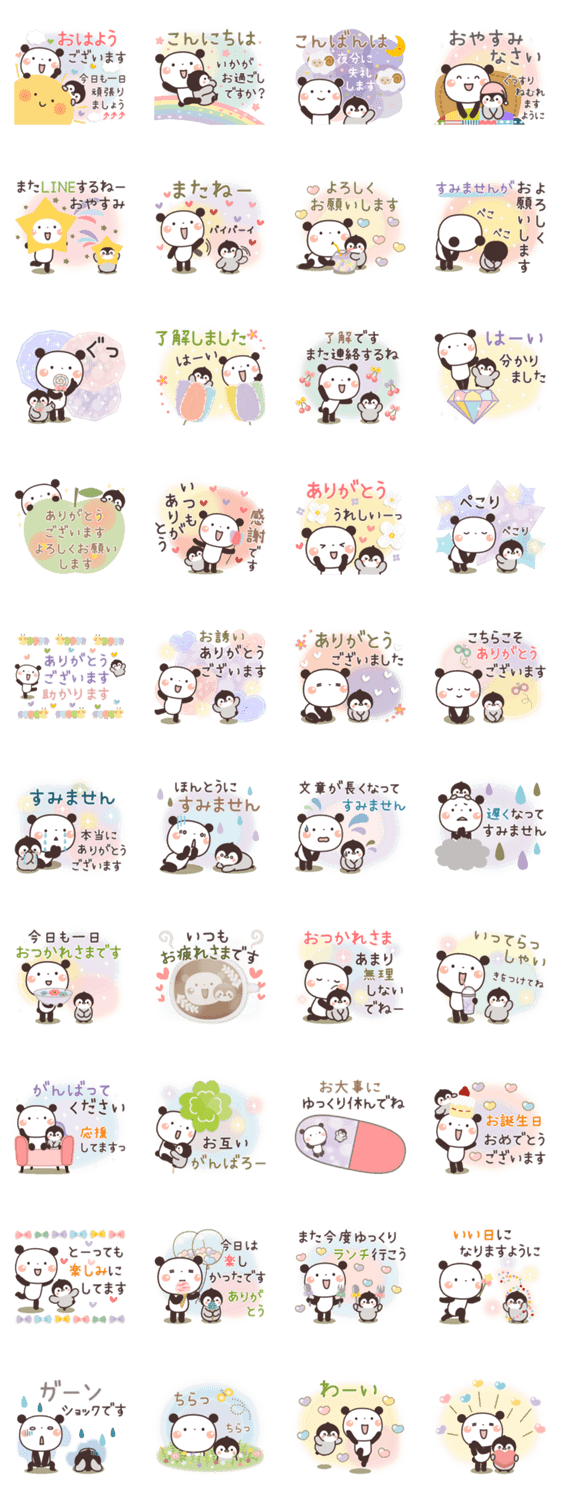 大人可愛いぱんちゃんとゆるぺんの毎日使える便利な長文のスタンプです。敬語多めです♪