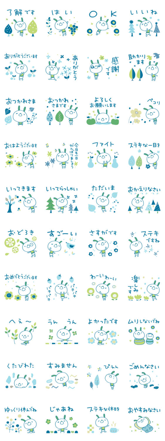 | スタンプ説明 | コケうさ。「了解です」「楽しみです」から「ゆっくり休んでね」まで。北欧テイストのメッセージをシンプルに届けよう。家族、学校、お仕事でも。 |