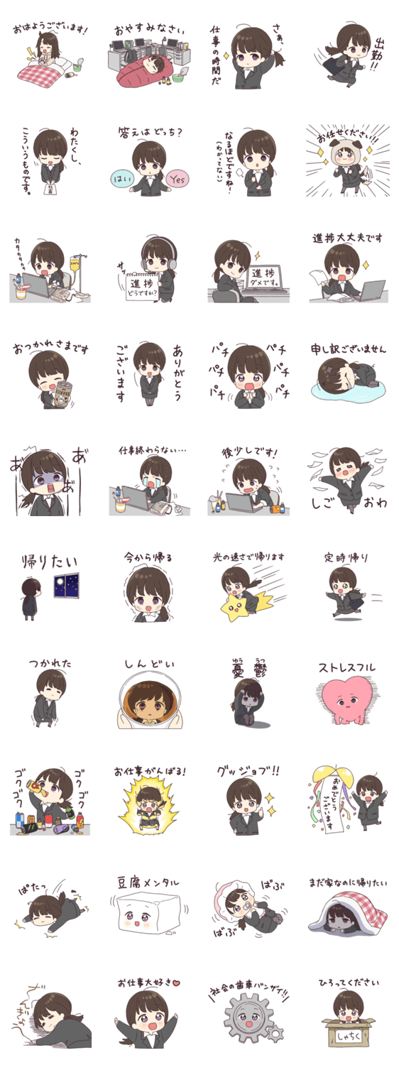毎日なぞの義務感だけで仕事をする社畜ちゃん。頑張る全ての限界OLたちのスタンプ。