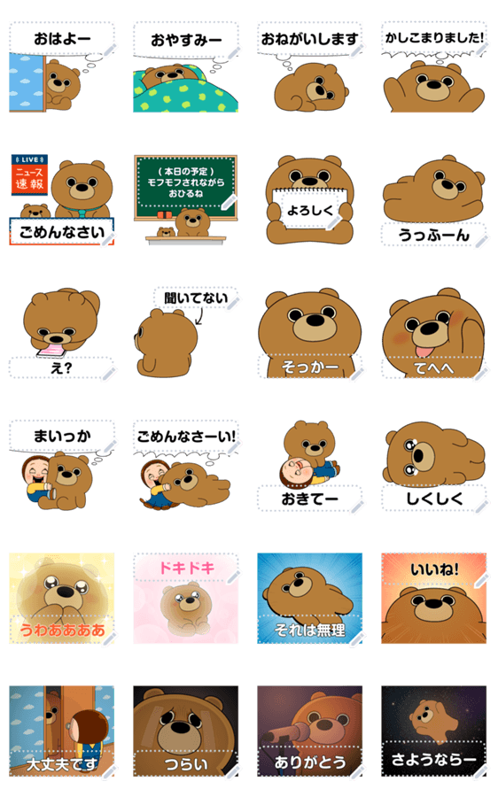 しょーちゃんのくまがメッセージスタンプになったんダヨー! 現在この商品は一部のスマートフォン版LINE 10.3.0以上のトークルームでのみ使用できます。動作環境の最新情報はヘルプをご確認ください。