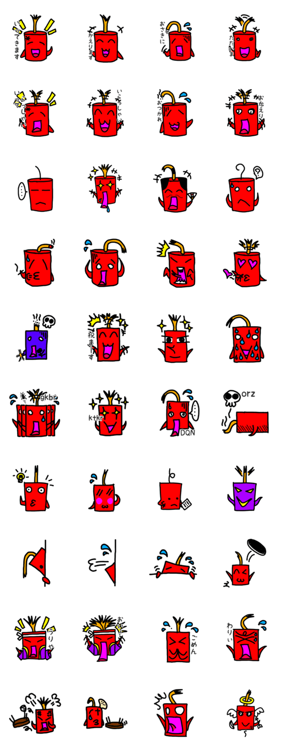 ダイナマイトの表情と導火線の形状で感情表現をしています。