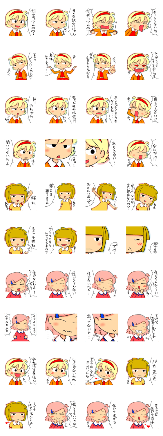 三姉妹の物語。「ちょっともう見てらんない、何やってんの!?イライラしちゃう!」…と、そんなあなたにこのスタンプ。後半にフォロー用のスタンプも付けたよ。