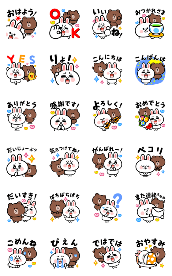 コニーとブラウンの飛び出すスタンプ!毎日使える挨拶と返事がそろってます。かわいい動きで気持ちを伝えよーね~♪ ※BROWN & FRIENDS をみんなでつくろう!キャンペーン参加スタンプです