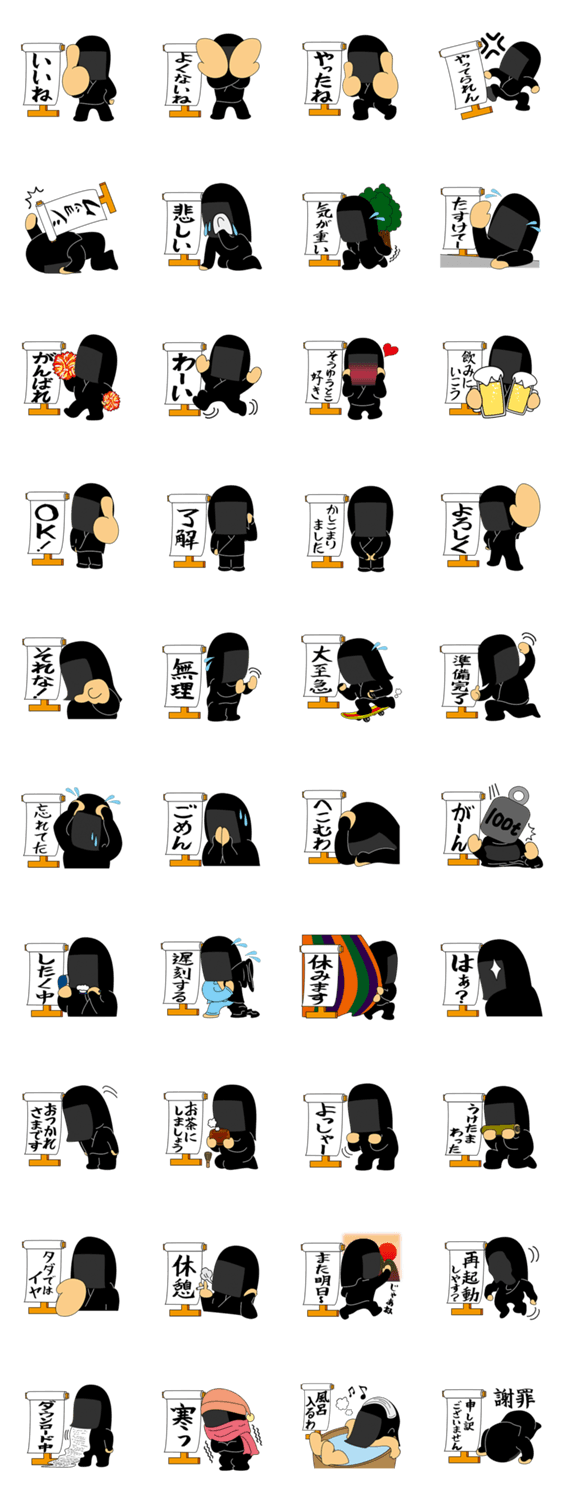 黒子(くろこ)の第二弾です。めくり台を全数に配置してスタンプらしく?してみました。初代から一年経って作ったけど、絵、ちょっとはマシになったかな?・・・