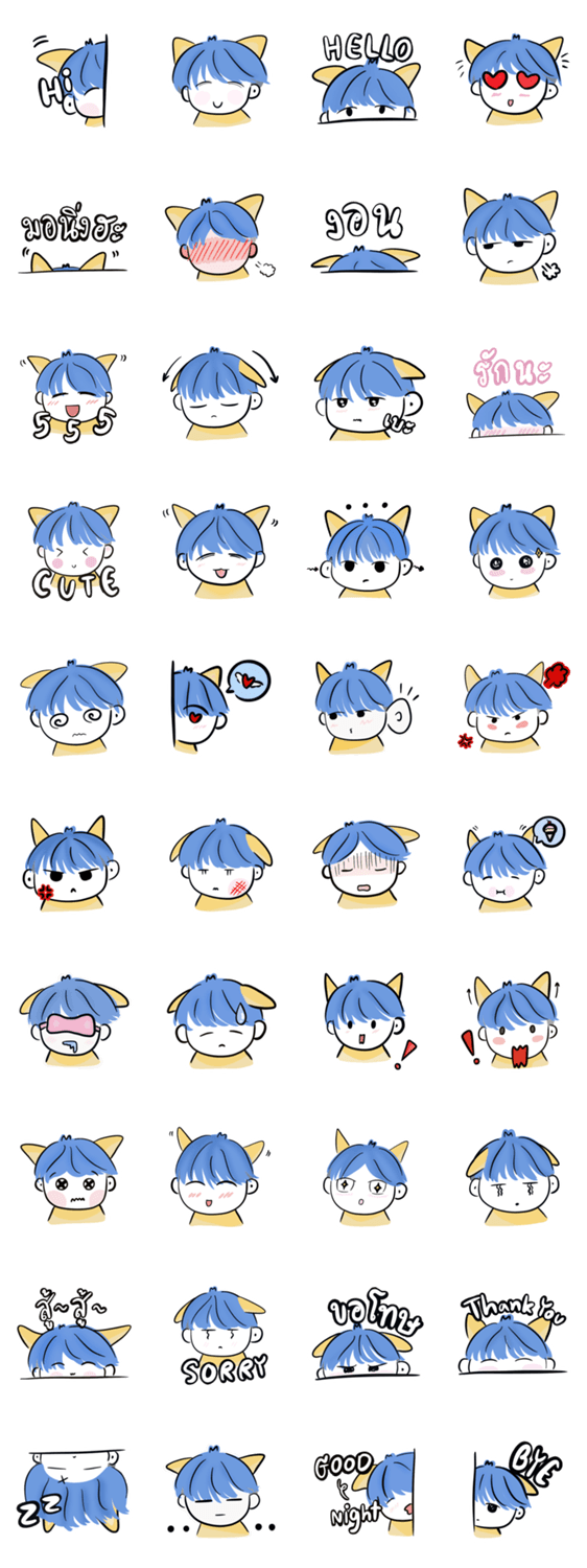 | スタンプ説明 | He name is Boo. Boo has blue hair. Boo has yellow ears. Boo has pastel colors. And Boo said -bove boo Uh.. It means -love you |