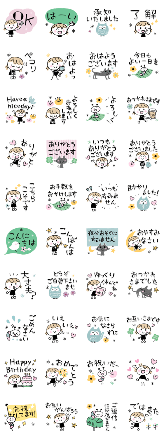 ミルクティ女子の気遣いスタンプです♪北欧風の動物達も入ってます。