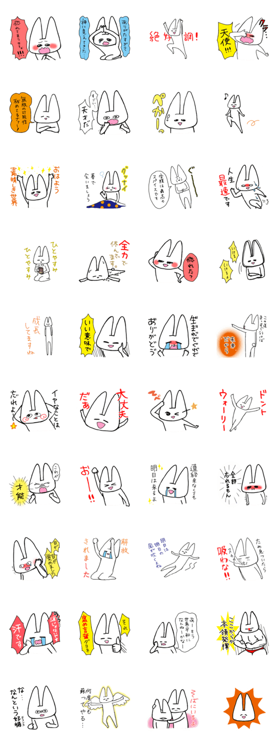 | スタンプ説明 | 生きていれば悲しいことも苦しいこともある…でもそんな世の中だって悪いことをいわず無理やりにでもポジティブに生きていこうじゃないか!というスタンプです。 |